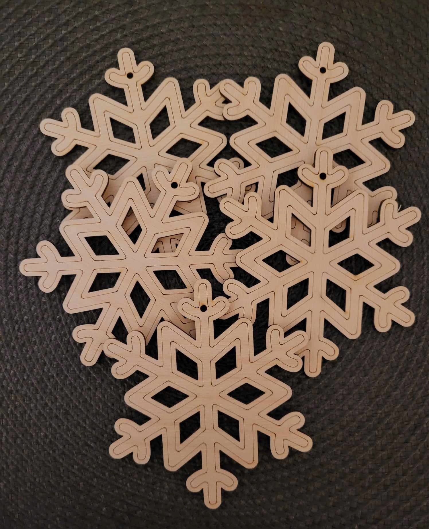 DREWNIANE BOMBKI, OZDOBY ZAWIESZKI CHOINKOWE ŚNIEŻYNKA 11cm