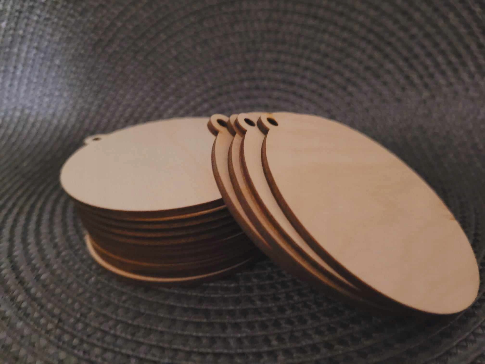 Zawieszki wycinane laserowo ze sklejki w I gatunku o grubości 3mm.