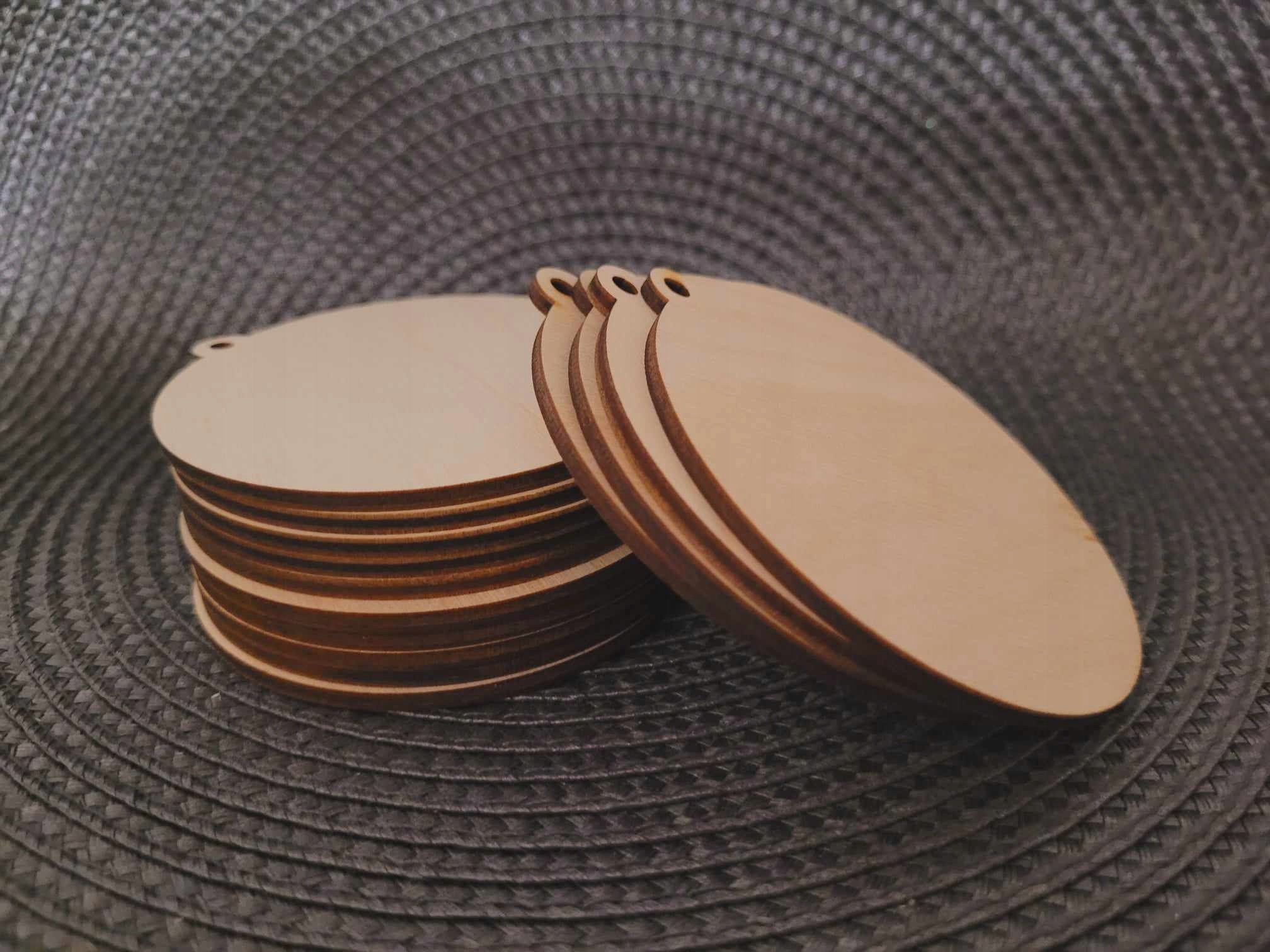Zawieszki wycinane laserowo ze sklejki w I gatunku o grubości 3mm.