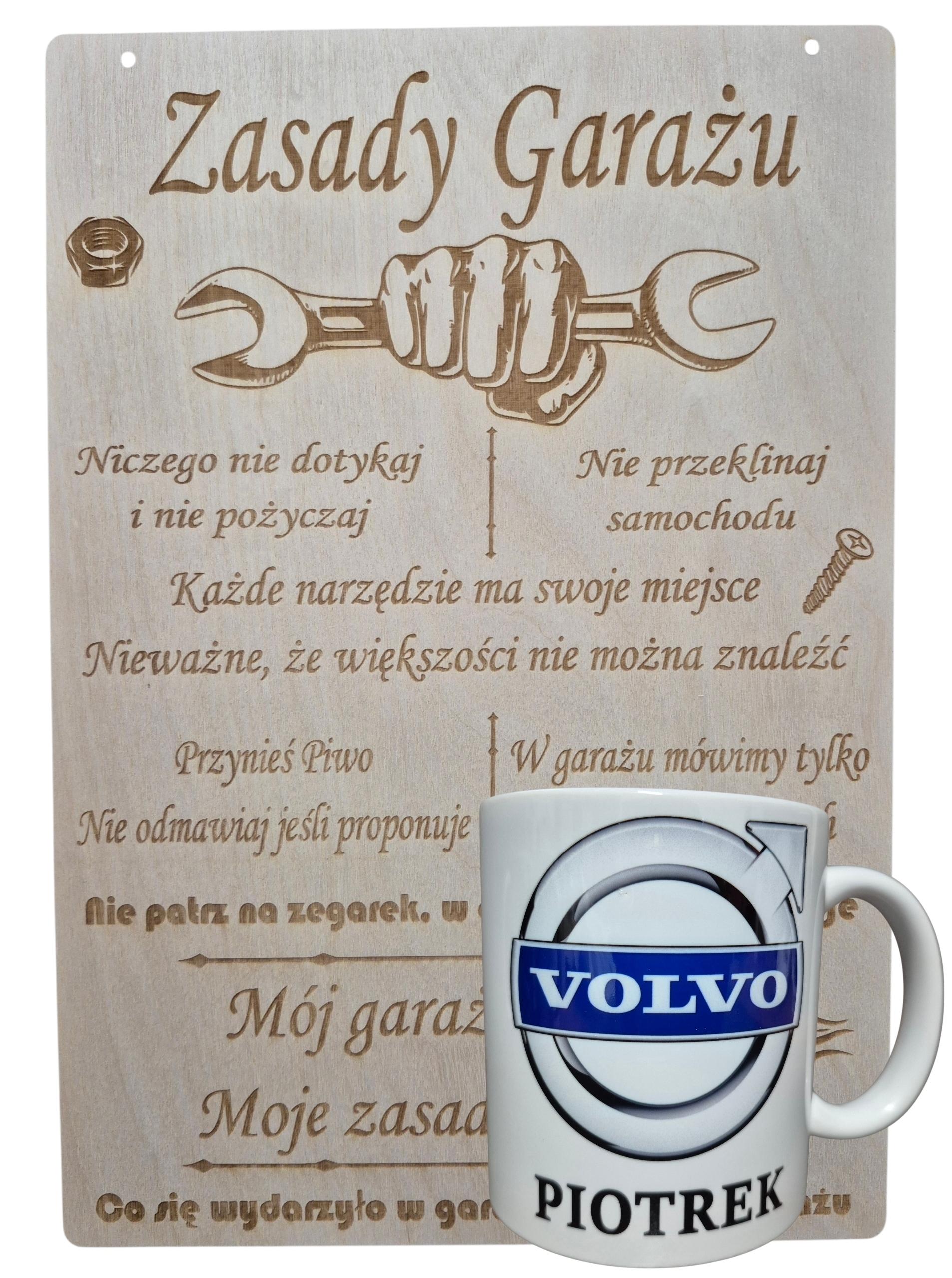 Kubek Volvo Motoryzacja Imię Prezent Zasady Garażu Śmieszna Tabliczka