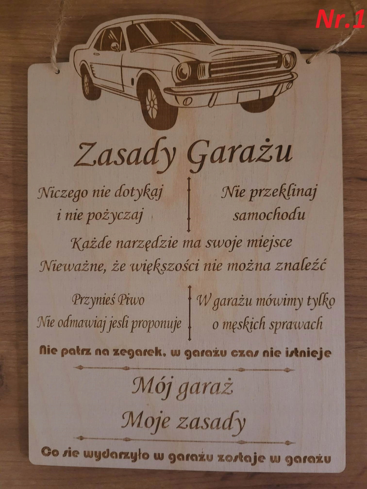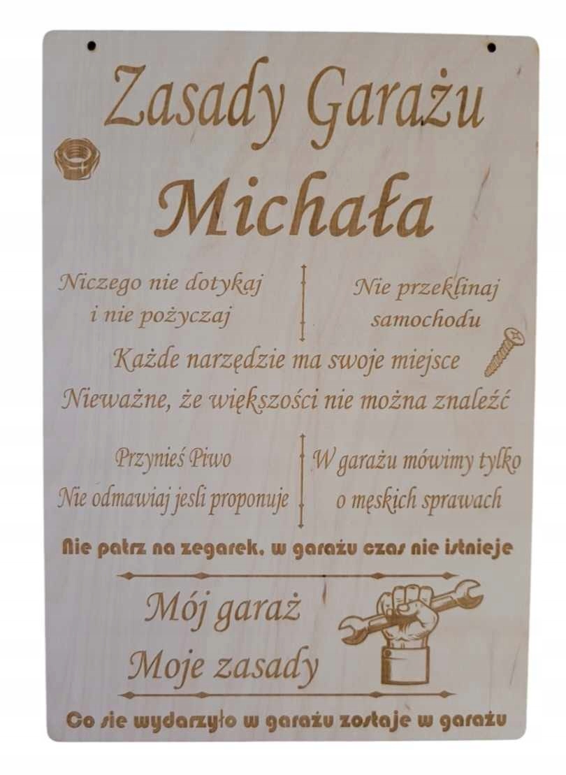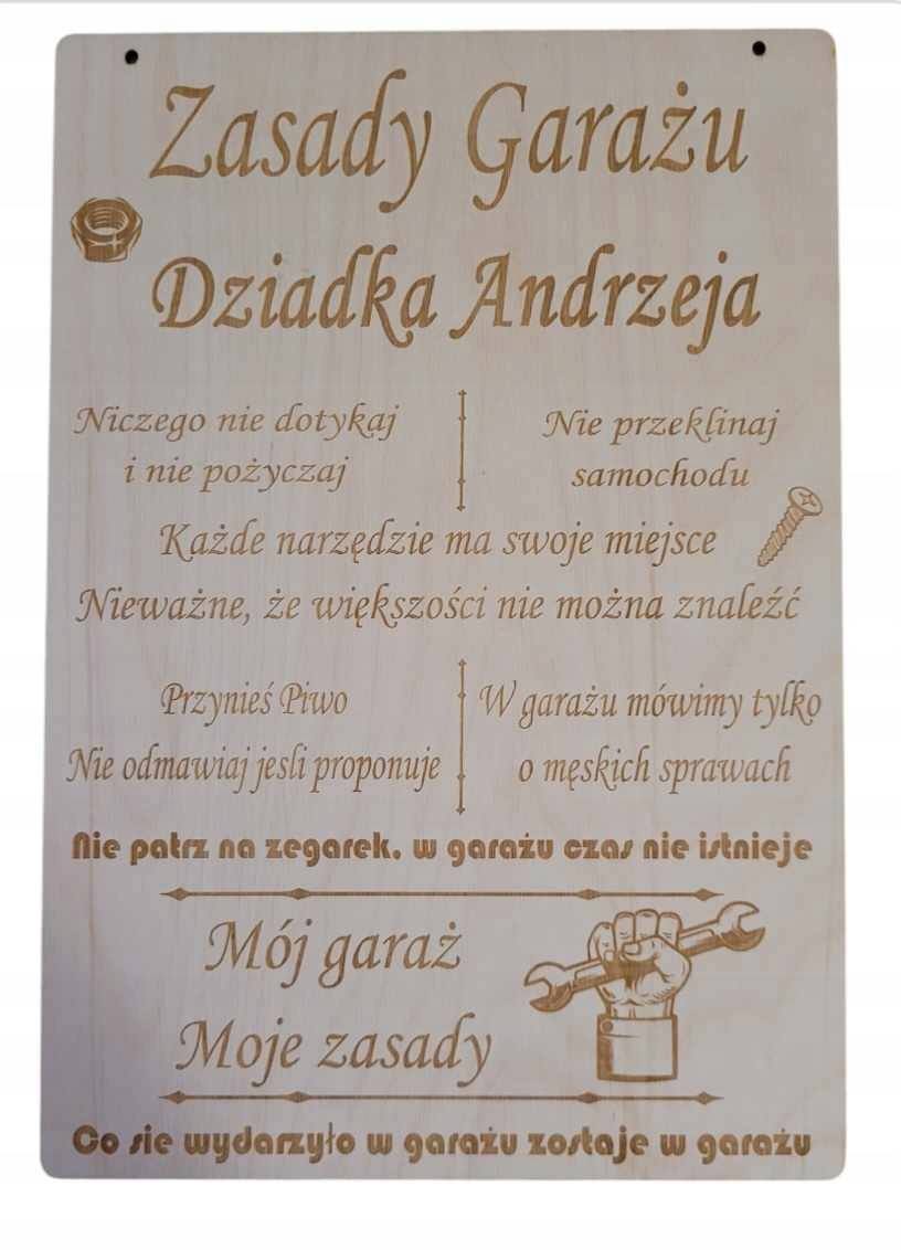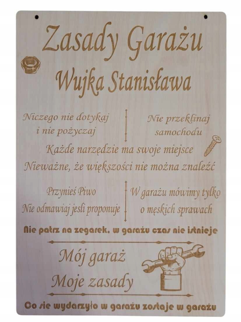 Zasady Garażu Śmieszna Tabliczka Prezent Sklejka PERSONALIZACJA